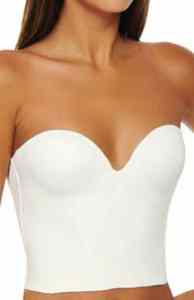 Not what you would expect as a low back bra, but it is just the same. True, it is a longline bra, but the back is low on your back. This allows wearing backless dresses or blouses with ease while keeping the shape of your torso slim and sexy. The price tag on this one runs around $40.00. An added perk to this bra is that it has a two-inch wide band. This band is made to stay in place and it also gives you more tummy control. This is really a good shape for a C Sized Breast as it provides a lot of support like a plus size bra. The torso is able to push up underneath the bust.
